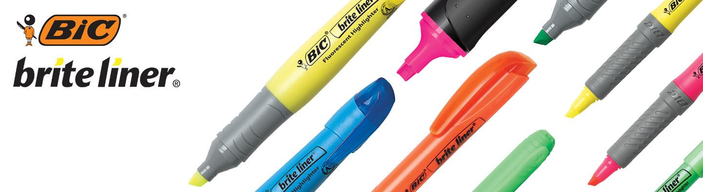 Available in five super-bright colors yellow, pink, orange, green, and blue BIC Brite Liner Highlighters allow you to easily color-code your notes and documents. The vivid fluorescent inks stand out on the page without obscuring the text underneath.