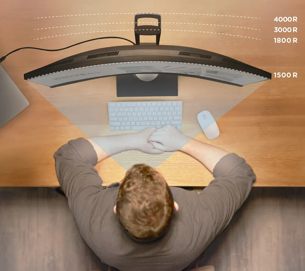 A 1500R curved display delivers a more immersive experience and helps reduce eye strain by keeping the edges of your screen within a natural viewing distance.