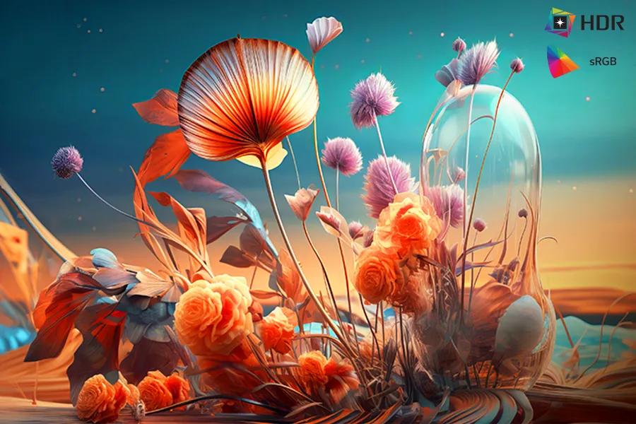 Immerse yourself in a world of brilliant color from HDR10 that helps enhance picture quality and up to 99% sRGB color gamut expression to make games visually pop.