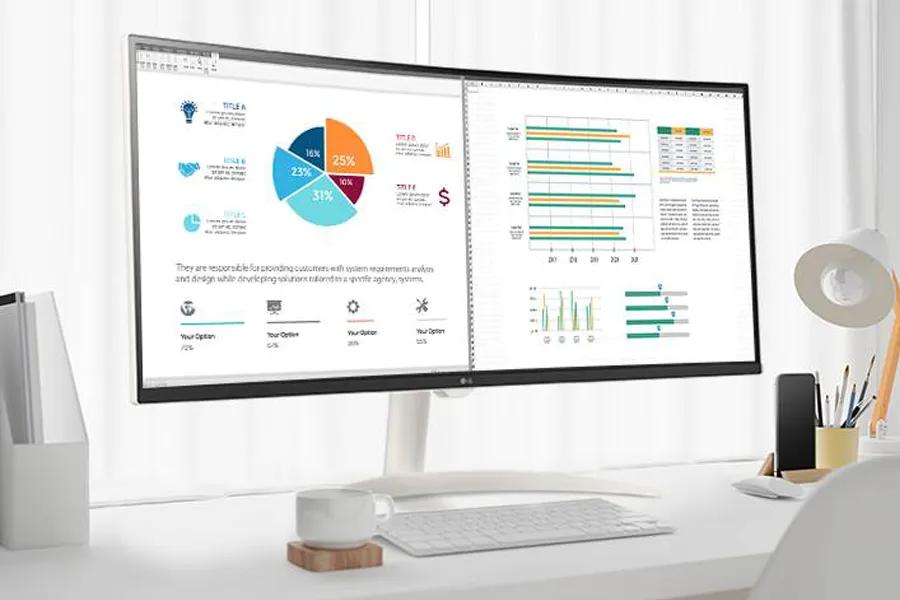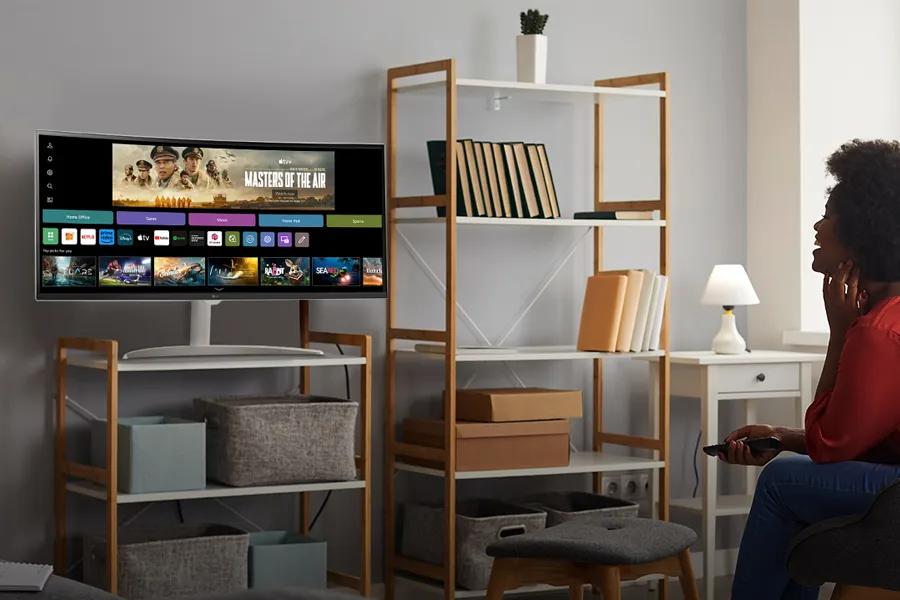 LG Smart Monitor is designed for multitasking while you work, play and watch. Connect the 34” 21:9 curved display to a laptop, desktop or gaming console to immerse yourself in your work or games. Or, with the monitor’s built-in LG webOS, you can watch your favorite shows from your favorite streaming apps. 1