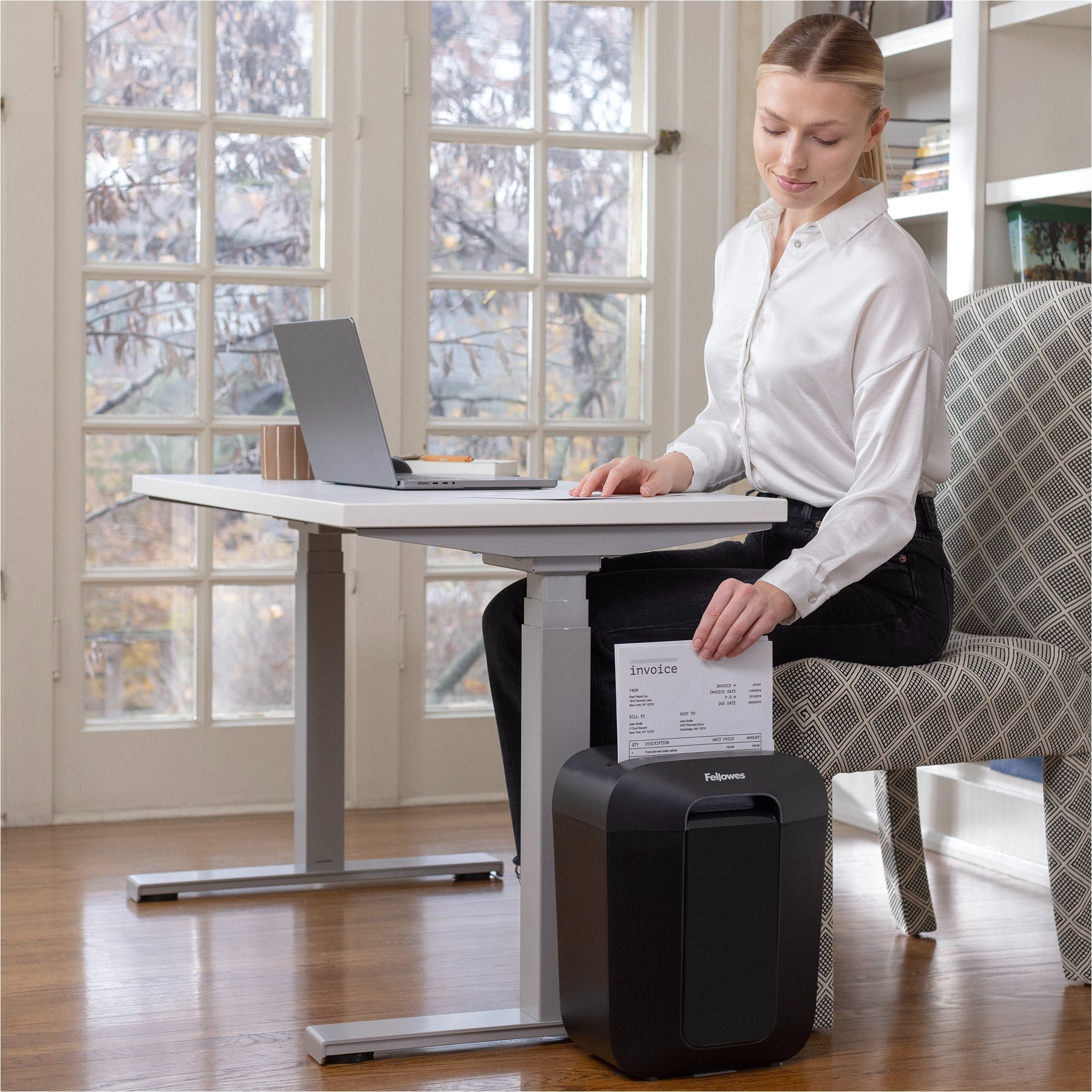 Shreds 8 sheets per pass into 5/32" x 1/2" micro-cut particles for ultimate security.