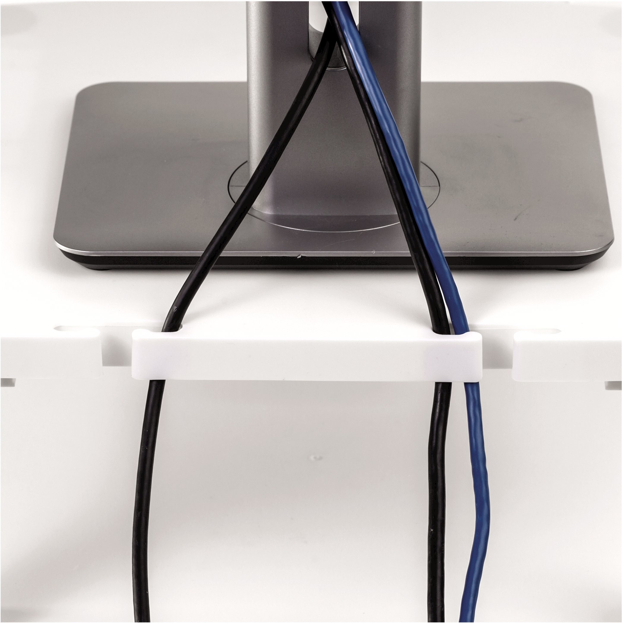 Innovative stacking columns raise monitor to eye level to help prevent neck strain