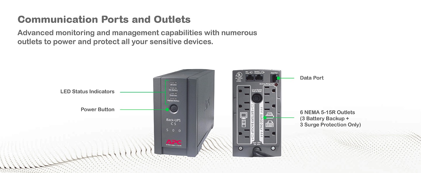 | Is this UPS battery user-replaceable? | Yes, the UPS is compatible with a dedicated user-replaceable battery, and the APC replacement battery cartridge helps restore UPS performance to the original specifications. |