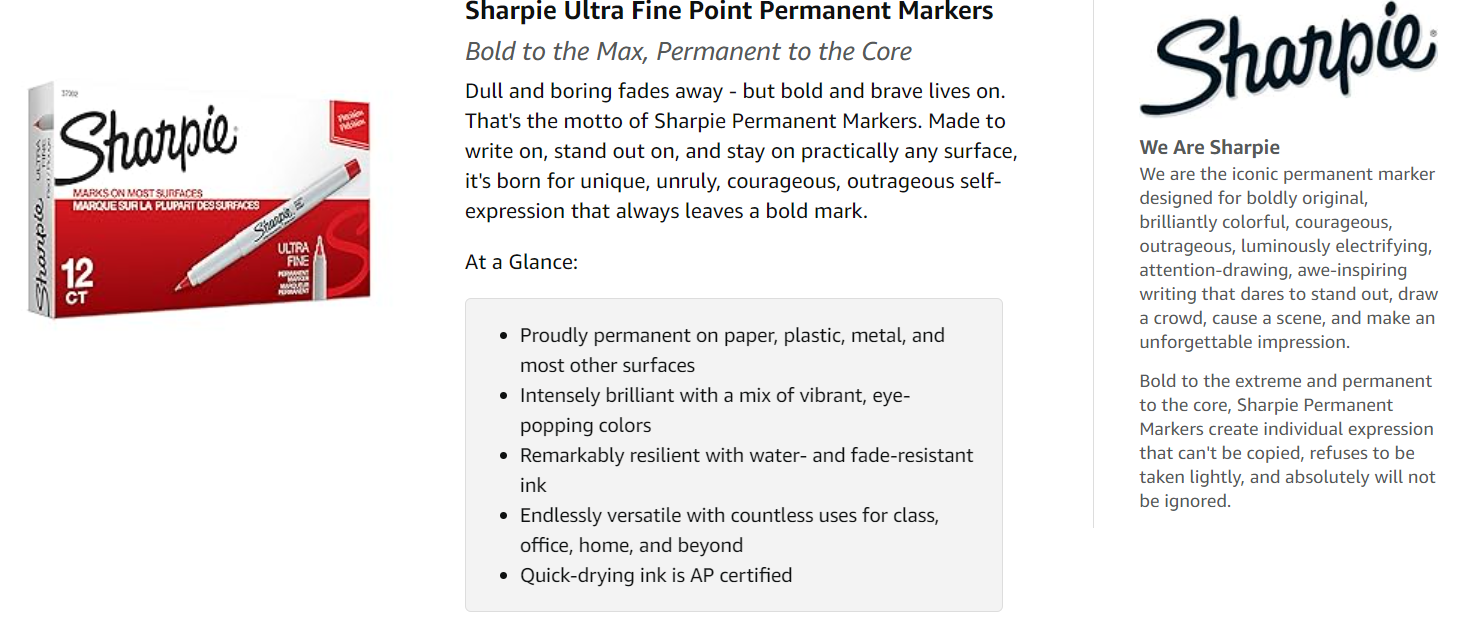 Made to mark and stand out on almost every surface, iconic Sharpie permanent ink is quick drying and water- and fade-resistant.