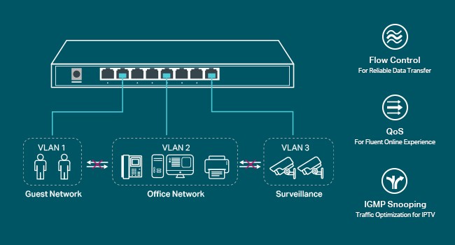 Administrators can use QoS to designate the priority of traffic. For example, prioritize your cameras or IP-phones to ensure that voice and video applications remain clear and lag-free.