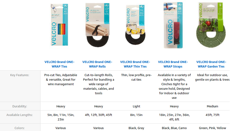 VELCRO® Brand One-Wrap® Rolls conveniently attach themselves at any length. The durable heavy duty design is perfect for use around the home, work site and office.