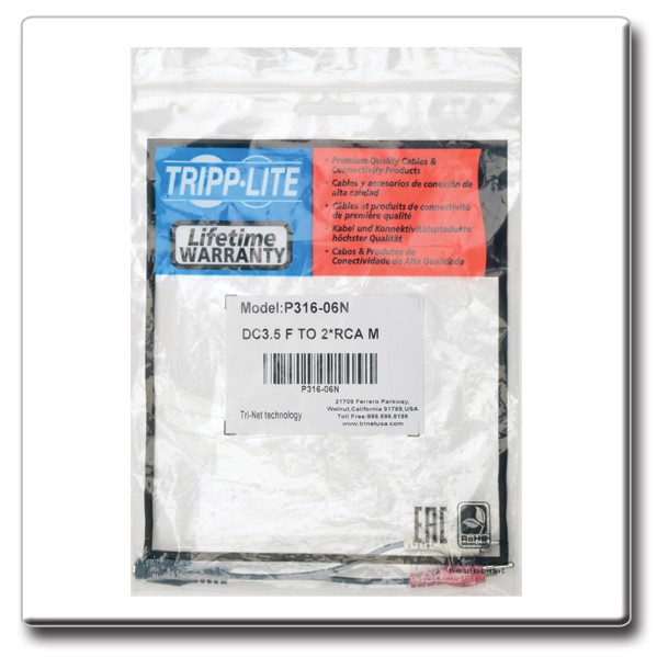 peace of mind! We’re so confident of the quality of our P316-06N audio cable that we warrant it to be free from defects in material and workmanship—for life! Additionally, the P316-06N is manufactured in compliance with strict RoHS specifications, reflecting Tripp Lite’s commitment to environmental responsibility.