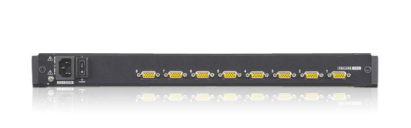 The CL1308 LCD KVM Switch features an integrated 19" LED-backlit LCD panel allowing access and control with up to 8 computers from a single console (keyboard, mouse, and monitor). As many as 8 additional switches can be cascaded bringing the total number of connected computers to 128 computers that can be controlled from a single keyboard-monitor-mouse console.