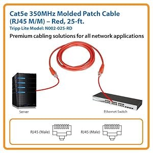 For peace of mind, this 25-ft. Tripp Lite Cat5e 350MHz Molded Patch Cable comes backed by a lifetime warranty. The N002-025-RD is manufactured in compliance with strict RoHS specifications, reflecting Tripp Lite’s commitment to environmental responsibility.