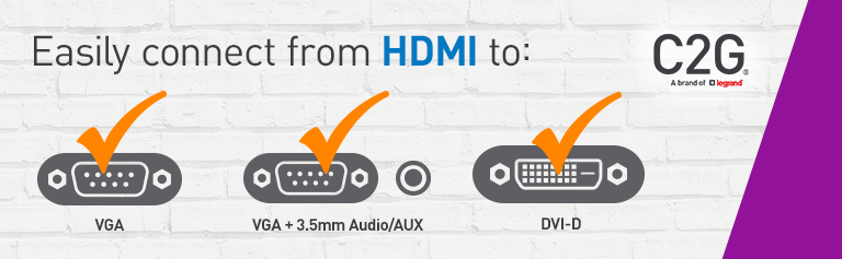 Easily adapt from HDMI to DVI, VGA or VGA + 3.5mm Audio.