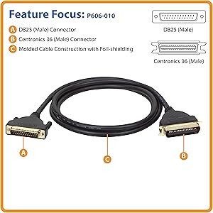 Unlike cut-price cables, the P606-010 is manufactured to exacting specifications, using superior materials. Nickel plated connectors and gold plated copper contacts offer superior conductivity, while solid molded cable construction with foil-shielding reduces EMI/RFI interference and low-capacitance twisted-pair conductors protect against cross-talk and other transmission problems for optimal signal transfer.