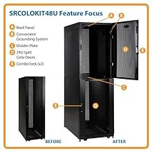 Save money by getting new use out of your existing rack enclosure cabinets with the SRCOLOKIT48U. The SRCOLOKIT48U turns Tripp Lite’s standard SR48UB 48U single-compartment enclosure cabinet into a dual-compartment collocation rack so two different users are able to occupy 23U of secure space each. An included divider panel separates the two compartments, and the rack’s 48U front and rear doors are replaced by independently lockable 24U doors, each with its own unique, user-settable combination code.
