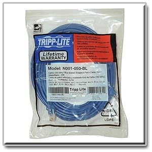 For peace of mind, this 50-ft. Tripp Lite Cat5e 350MHz Snagless Molded Patch Cable comes backed by a lifetime warranty. The N001-050-BL is manufactured in compliance with strict RoHS specifications, reflecting Tripp Lite’s commitment to environmental responsibility.