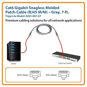 The ideal solution for all high-speed networkingDon’t settle for less than the best—enjoy better signal quality and faster transmission! This seven-foot Tripp Lite Cat6 Gigabit Snagless Molded Patch Cable ensures ultra-fast performance throughout your local area network application. Cat6 cables (also called network cables, patch cables, computer cables, Ethernet cables and LAN cables) are used to connect components like printers, computers, copy machines, routers, servers, modems, switches and Cat6 audio/video products. The N201-007-GY is manufactured to exacting specifications, using superior materials, for optimal network performance. It’s designed for 1000Base-T (1 Gbps Ethernet), 10/100Base-T (Ethernet), 100 Mbps TPDDI, 155 Mbps ATM, ISDN, voice and Token Ring Type 3 applications. This seven-foot Tripp Lite Cat6 Gigabit Snagless Molded Patch Cable is the ideal solution for connecting high-speed network components like computers, printers, Internet-enabled gaming systems and Blu-ray players, copy machines, routers and modems in a home or office application. |