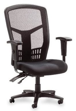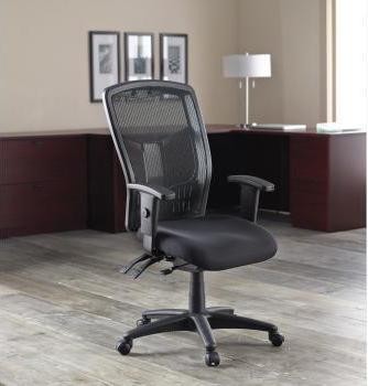 Ergonomic high-back mesh chair is perfect for supporting the natural curvature of the spine. The arms are padded and can adjust in height and width.