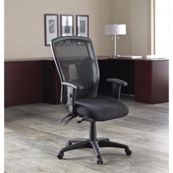 Ergonomic high-back mesh chair is perfect for supporting the natural curvature of the spine. The 86200 offers a breathable mesh back and fabric seat with plastic-coated black steel frame. The arms are padded and can adjust in height and width.
