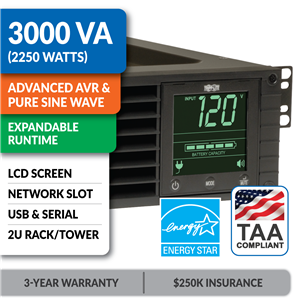 SM3000RM2UNTAA SmartPro® Line-Interactive Rack/Tower Sine Wave UPS with Expandable Runtime, Network Card and LCD