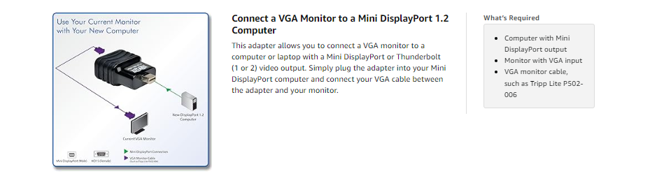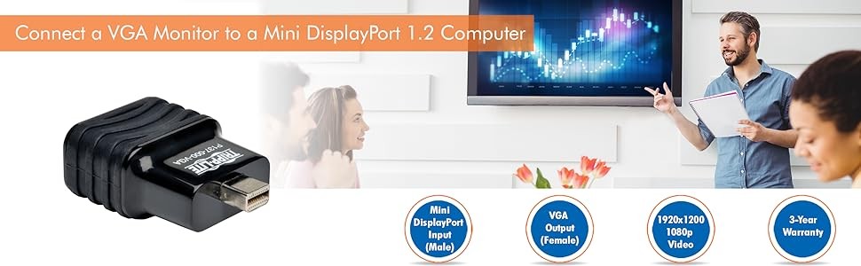 This adapter helps you save money by making your current VGA monitor compatible with a Mini DisplayPort-equipped computer. Active digital-to-analog circuitry and quality manufacturing ensure a clean, consistent video signal.