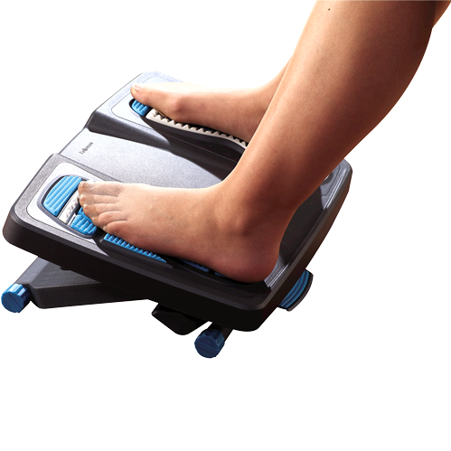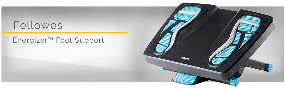 The Fellowes Energizer Foot Support features an invigorating rubber surface with diverse massage textures to target pressure points. The Energizer elevates feet and legs to help relieve lower back pressure and improve posture. Free-floating platform allows for intuitive rocking motion to help promote lower leg movement. Scissor motion height adjustment provides three platform height settings (4", 5-1/4" and 6-1/2") and up to 25°tilt. 1-Year Limited Warranty.