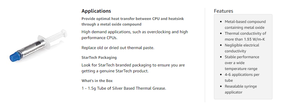 StarTech.com Thermal Paste, Metal Oxide Compound, Re-sealable Syringe (1.5g), CPU/GPU Thermal Grease Paste