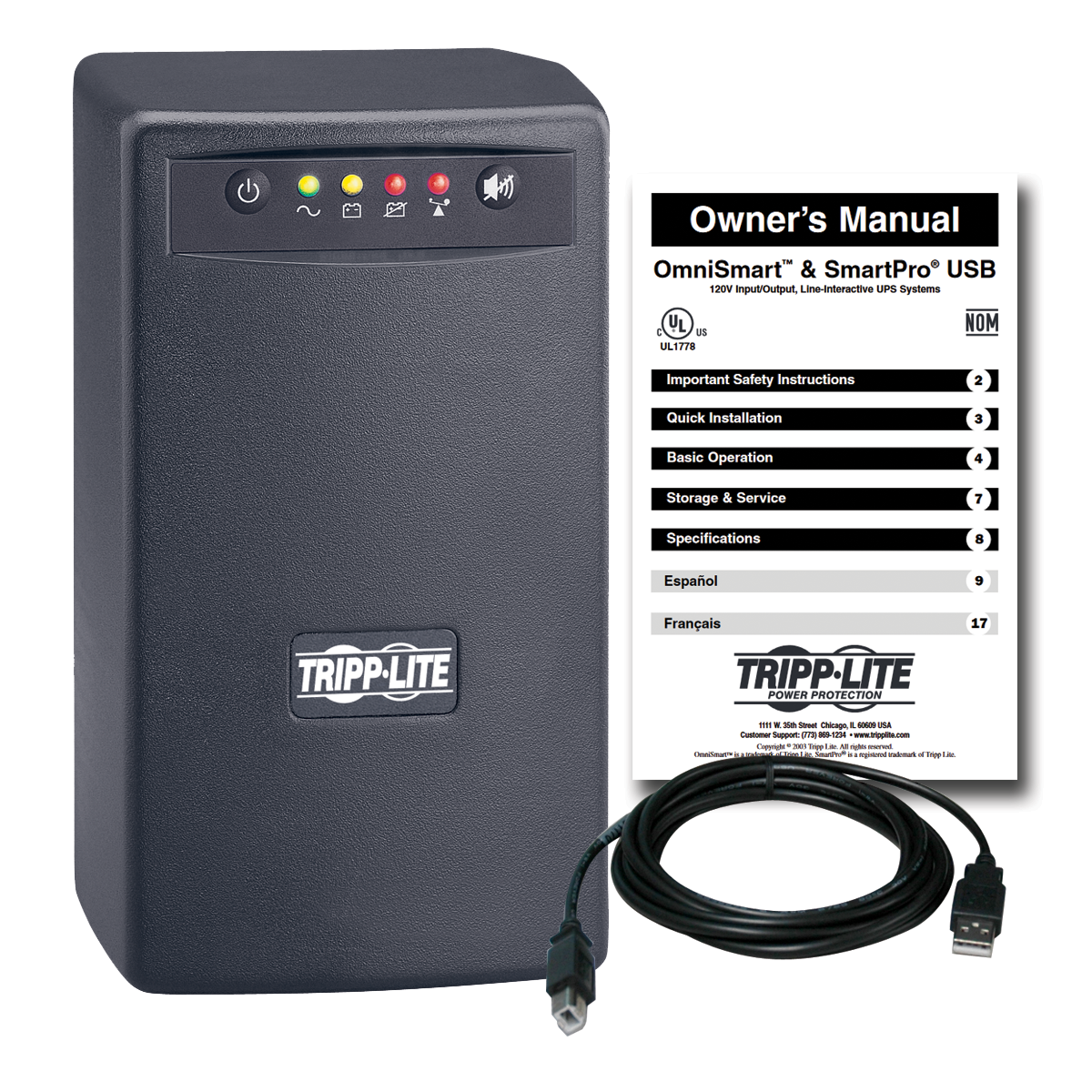 Tripp Lite has a policy of continuous improvement. Specifications are subject to change without notice. Actual products may differ slightly from photos. Tripp Lite uses primary and third-party agencies to test its products for compliance with standards. Runtime varies with load, battery condition and other factors. Go to Tripp Lite's website for more information, including complete warranty terms and conditions.