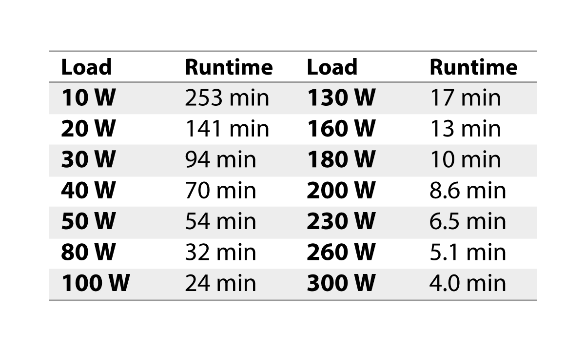Half-Load Runtime: 14.6 min. (150 W Load)