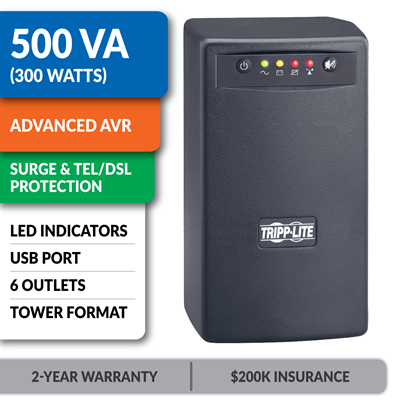 All Tripp Lite UPS systems also include built-in surge protection and noise filtering to shield your equipment from destructive transient voltages and electromagnetic (EMI/RFI) line noise.