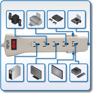 This surge protector is perfect for home and office electronics of all kinds, including computers, monitors, printers, wireless routers, televisions, video game consoles, streaming media players, sound systems, device chargers, DVRs, fax machines, broadband modems, desk lamps and small appliances.