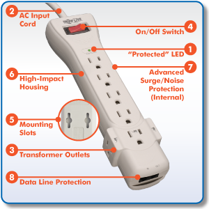 Maker of the legendary Isobar, Tripp Lite is the smart choice for protecting your valuable equipment. This surge protector defends computers and electronics from damaging surges and disruptive line noise. If it is ever damaged by a surge, Tripp Lite will replace it, and connected equipment is covered too.