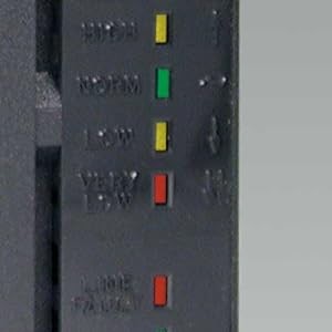 Seven diagnostic LEDs provide complete power status information: AC power (green = NORM), incoming voltage level (2 x yellow = HIGH/LOW, 2 x red = VERY HIGH/VERY LOW) and AC line status (green = LINE OK, red = LINE FAULT). An On/Off switch located on the rear of the unit provides one-touch power control over all components.