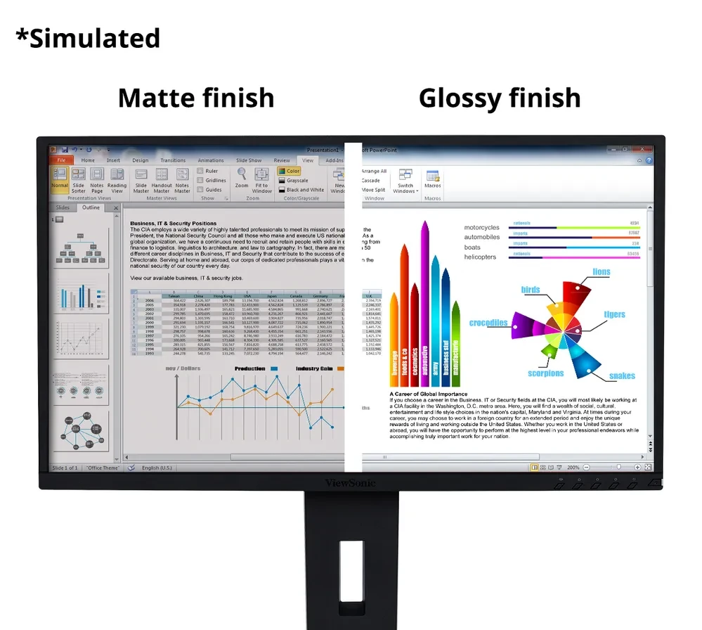 A reversible glossy and matte finish lets users choose how to view their screen. A matte finish reduces external glare for areas with strong backlighting.