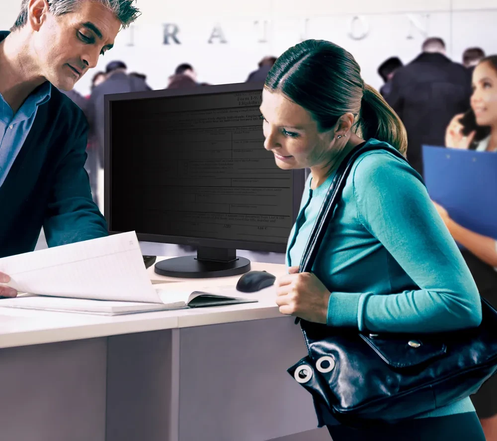 When the privacy filter is applied to your display, its ultra-thin design ensures that the quality and performance of your screen is not affected. The information viewed directly in front of the screen remains clear and visible to those who need it and blocked from those who don’t.