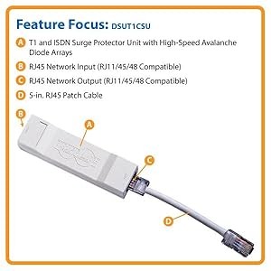 Don’t give power surges a back door through datalines to damage your equipment! Tripp Lite's DataShield DSUT1CSU offers complete network Ethernet line surge suppression for CSU/DSU's and other high speed equipment on digital and leased lines, T1 and ISDN interfaces. Convenient RJ45 input and output connections with included 5-inch Ethernet patch cable enables ideal protection for 'U' and 'S/T' interfaces on modems, NT1 devices, terminal adapters and other pieces of high-speed equipment.