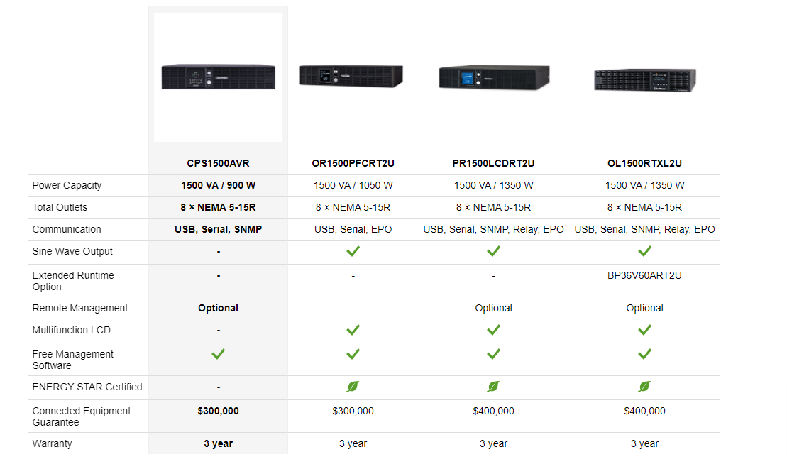 Provides backup power, surge protection and advanced power management capabilities for corporate and departmental applications, including: