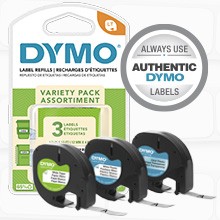 DYMO LetraTag tapes come complete with matte white paper tapes, glossy white plastic tapes and clear plastic tapes. Created specifically for your LetraTag label maker, they provide an economical solution for labeling almost anything and anywhere in your home. Pack size(s) available: