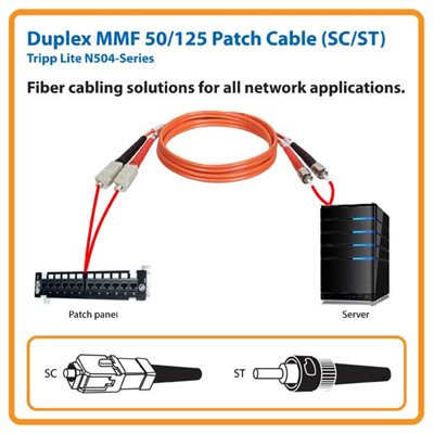 The N504-Series comes with widely compatible dual SC and ST connectors that are thoroughly tested to ensure they meet Tripp Lite's stringent insertion loss standards. The connectors' edges are also beveled and color coded for easy and secure connection throughout your network.
