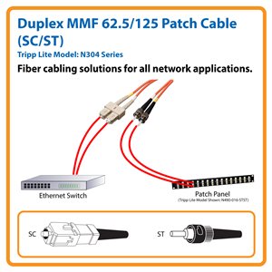 Tripp Lite’s N304-15M Duplex Multimode 62.5/125 Fiber Patch Cable ensures fast, clear signal transmission throughout your local area network. It’s designed for any fiber optic hardware or NIC card requiring multimode duplex cable with SC/ST connectors. This cable has attenuation loss that meets or exceeds current standards and is manufactured to exacting specifications for optimal network performance.