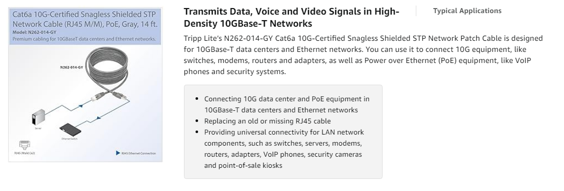 When you choose this genuine Tripp Lite cable, you get superior performance plus peace of mind. We’re so confident of its quality that we warrant it to be free from defects in material and workmanship for life! The N262-014-GY is also manufactured in compliance with strict RoHS specifications, reflecting Tripp Lite’s commitment to environmental responsibility.
