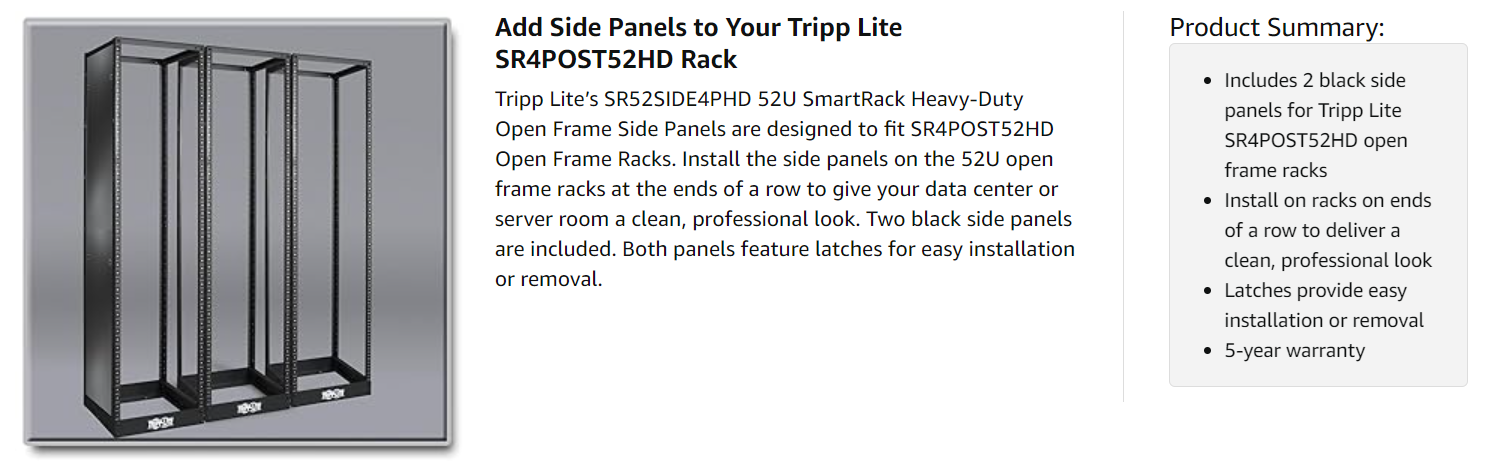 The SR52SIDE4PHD comes with a 5-year warranty. It’s manufactured in compliance with strict RoHS specifications, reflecting Tripp Lite’s commitment to environmental responsibility.