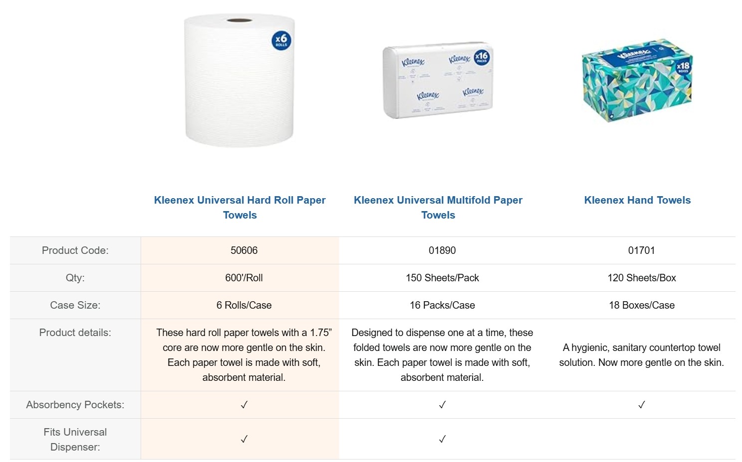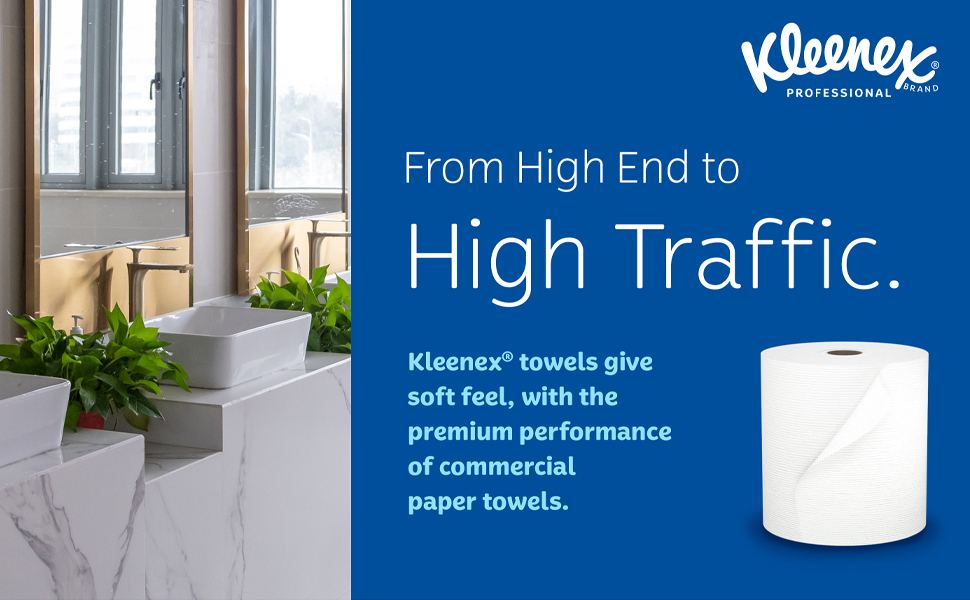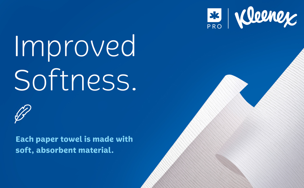 Providing top-quality Kleenex Paper Towels in your office washroom and kitchen lets your employees and guests know that you care enough to offer the very best experience. Now more gentle on the skin, these paper towel rolls offer terrific hand drying performance, so your guests will waste less. And now with improved softness, Kleenex Hard Roll Paper Towels offer a superior hand drying experience for your guests and visitors.