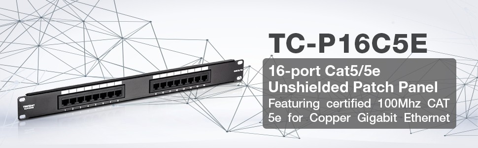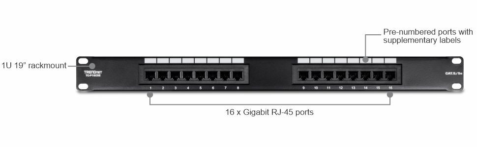 Get ready for copper Gigabit Ethernet with TRENDnet's CAT 5e RJ-45 UTP patch panels. These patch panels are certified 100Mhz CAT 5e, which is required for Gigabit Ethernet copper. TRENDnet's 16-Port 100 MHz Enhanced CAT 5 Patch Panels are ideal for Ethernet / Fast Ethernet / Gigabit Ethernet (1000Base-T) network applications. Using TRENDnet's CAT 5e now will prepare you for more bandwidth in the future without rewiring your network.