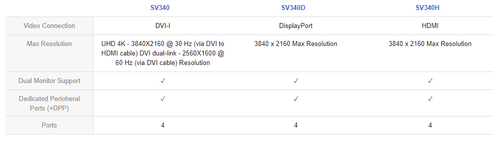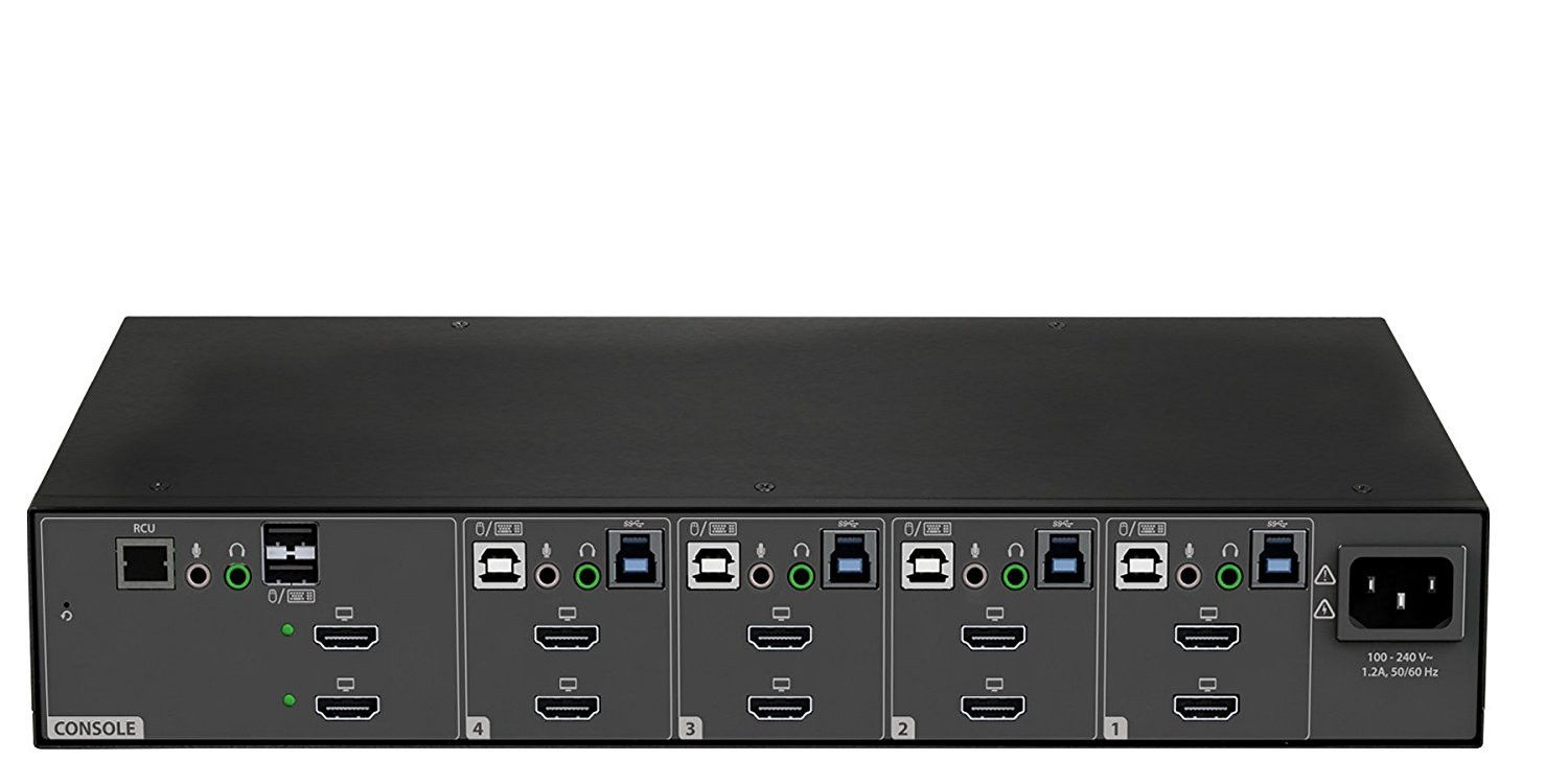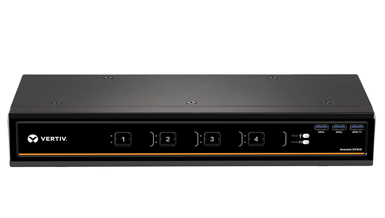 Vertiv Avocent SV 300 Series Desktop KVM Switches offer fast and reliable control of four desktop computers. Users may gain access to computers, peripheral devices, databases and servers, mobile devices or ultra HD multimedia systems through the push of a button via a single keyboard, mouse and dual monitors. Hotkey command capability and cursor navigation simplifies and speeds system access. A managed copy-and-paste feature enables copying of files and text from one source computer to the other for seamless source integration. Up to three USB ports enable easy connectivity to external USB devices. The Vertiv Avocent SV 300 Series KVM switches offer support for DVI-I, HDMI and DisplayPort in single- and dual-head models, supporting high resolutions up to UHD 4K. Select models offer the ability to switch between audio and USB 3.0 peripherals independently.
