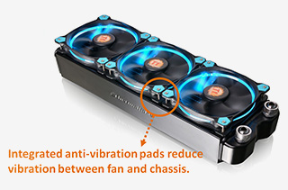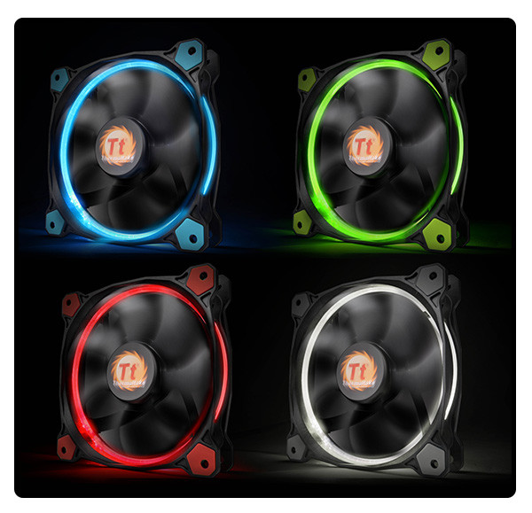 Thermaltake has released the new Riing 12 LED Series, a 120mm fan fitted to enhance static pressure that produces impressive cooling performance with an optimized fan blade. Hydraulic bearings for silent operation guarantee ultra-low noise. In addition, an anti-vibration mounting system strengthens the stability during operation.The patented LED Ring maintains color and brightness uniformity; the lighting effect is visible from all sides and angles. The four-colored LED ring (in blue, red, white, and green) adds style to the chassis.