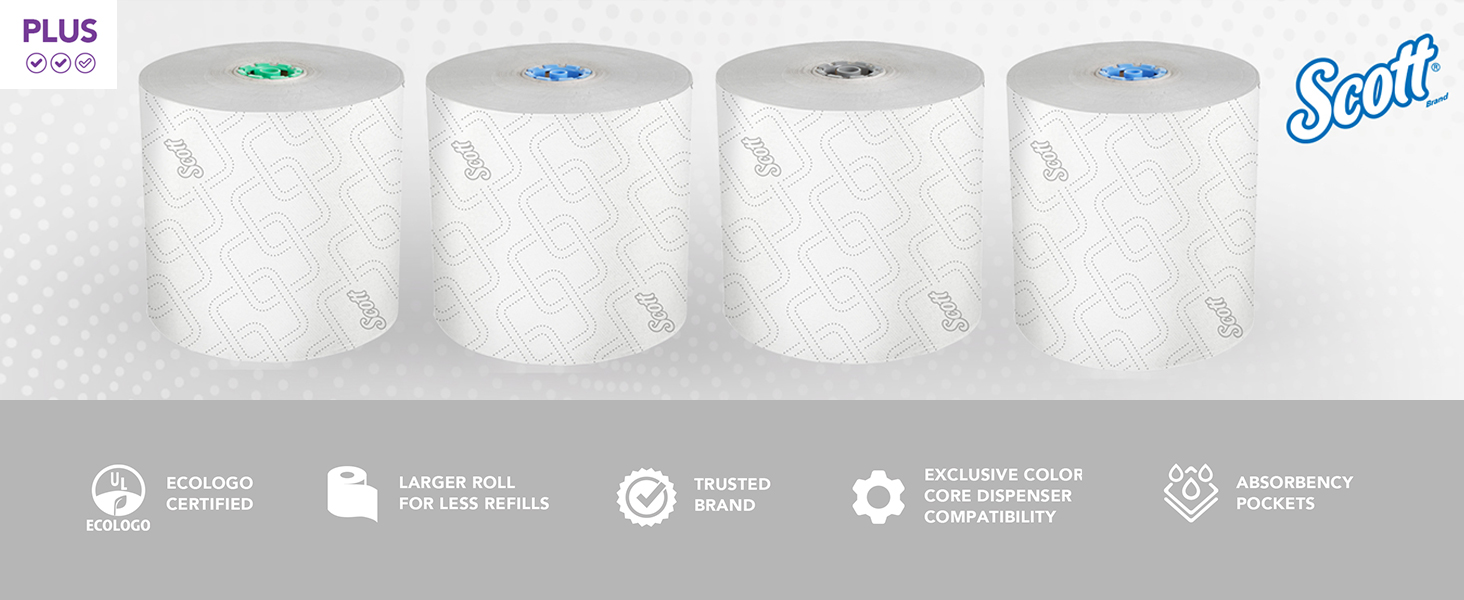 Scott® Pro™ provides state-of-the-art solutions to maximize productivity. Scott® Pro™ High-Capacity Hard Roll Paper Towels provide efficient, reliable hand-drying for your washroom or break room. With the new paper design, our paper towel is Unmistakably Scott® branded so you'll be recognized for providing the most well-known restroom brand in your facility. This new Elevated Scott® Design was preferred 4 to 1 based upon a 2019 KCP Brand Differentiation Study. These paper towels are exclusively compatible with the Scott® Pro™ Dispenser systems (blue/grey/green cores), which can adapt to suit your needs. Plus, the fast-drying Absorbency Pockets™ mean that users will need fewer towels to dry their hands. The result? More towels left in the dispenser, more times between refills and less paper waste. Drying is one of the most important steps in the hand washing process, and how you dry matters. Providing high-quality Scott® Pro™ Hard Roll commercial paper towels to your guests, clients and employees is one important piece of the workplace hygiene puzzle.