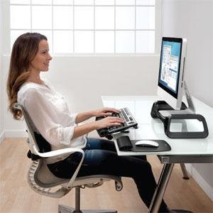 The innovative design and contemporary style of the Monitor Lift enhances comfort and coordinates with other Fellowes I-Spire Series products.