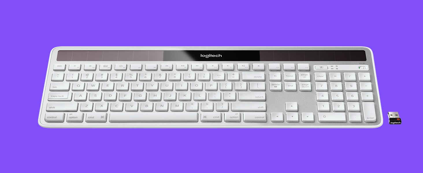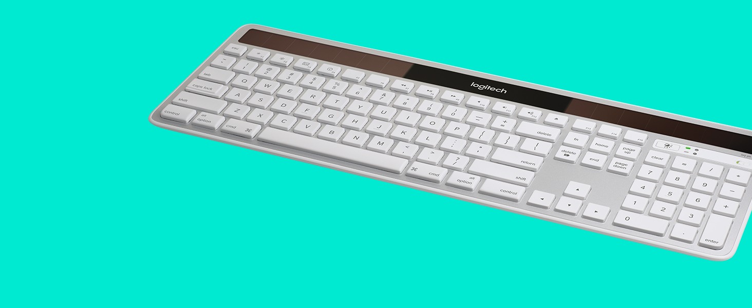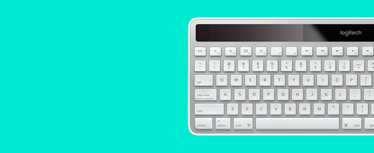 The keyboard charges itself with lamplight or sunlight. Easily monitor your power level with the Logitech Solar App.
