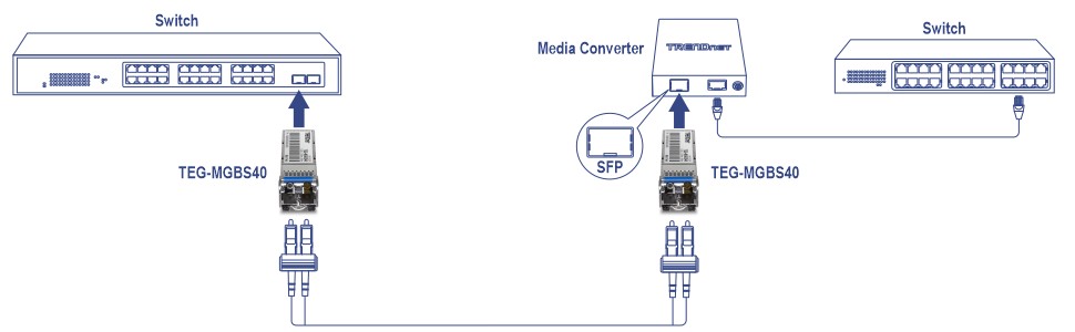 Mini-GBIC The TEG-MGBS40 Mini-GBIC Single Mode module works with standard Mini-GBIC slots on most switches. This SingleMode LC Type module spans distances up to 40km (24.9 miles) and includes 1 x 1000Mbps-LX ( LC-Type) Mini-GBIC connector.