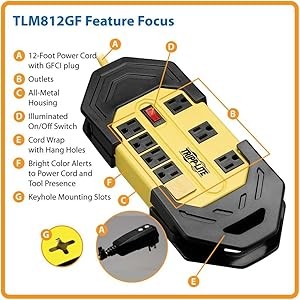 With its yellow color, rugged housing, extra-long cord, GFCI plug and plenty of outlets, Tripp Lite’s TLM812GF is ideal for harsh industrial, automotive and worksite environments. It provides reliable, consistent power service for multiple devices, and its keyhole mounting slots allow it to be installed wherever reliable, multi-outlet power distribution is required.