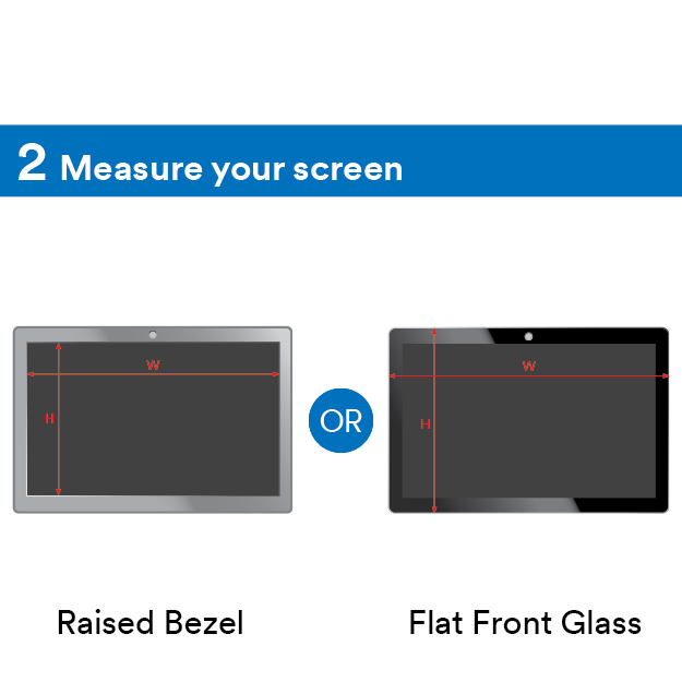 For a flat front glass screen, measure the height (h) and width (w) of the entire glass display.