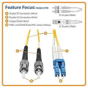 The N368-07M comes with widely compatible dual LC and ST connectors. The connectors' edges are beveled and color-coded for easy and secure connection throughout your network.